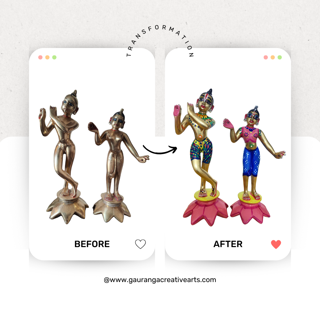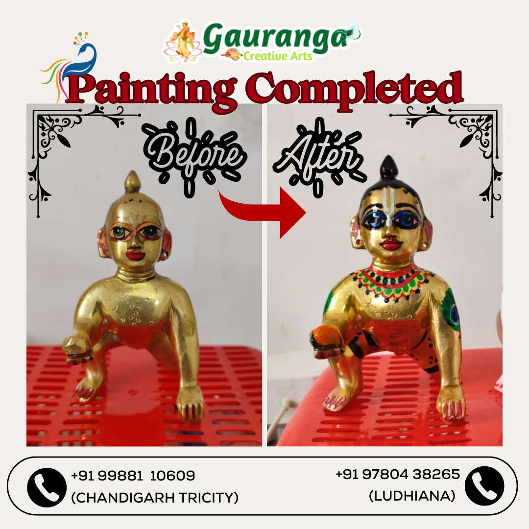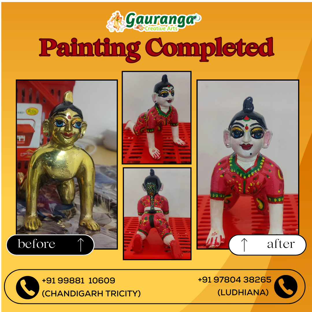 Gauranga Creative Arts is not just an art studio; it’s a space where creativity, skill, and emotion converge to create masterpieces. Every piece of art is a narrative, telling stories of divine connections, nature’s allure, and human expressions. Our artists, with their adept hands and imaginative minds, bring to life the silent, eloquent symphony of colors and forms.